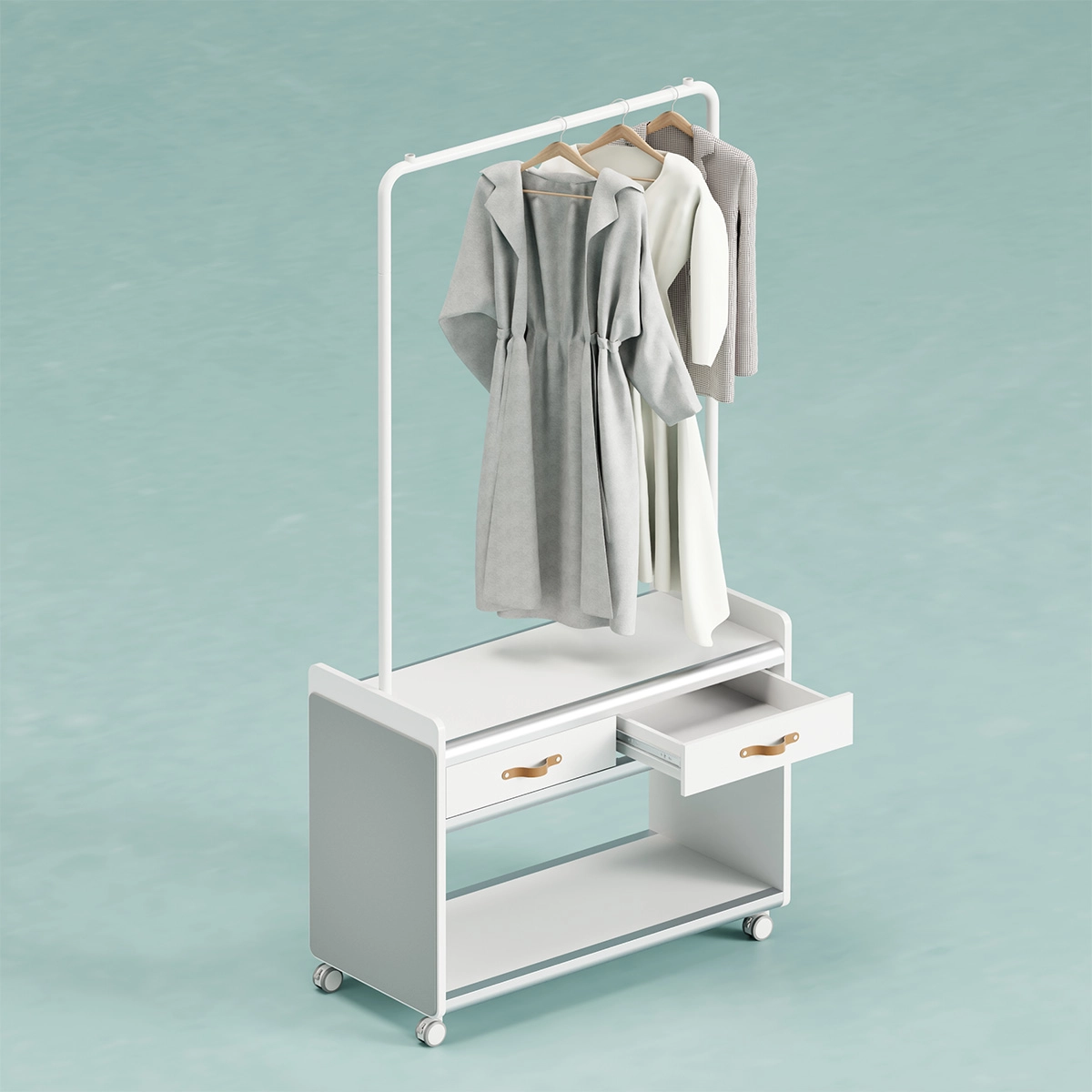 • Wielofunkcyjna szafka na kółkach Spacetronik to idealne rozwiązanie dla wszystkich osób szukających uniwersalnych rozwiązań. Dzięki jej mobilności będziesz mógł korzystać z niej, gdzie tylko zechcesz. Wyposażona w 2 szuflady i drążek na wieszaki.