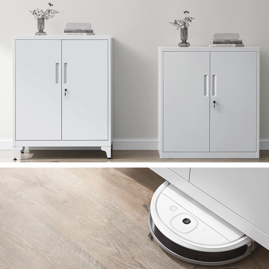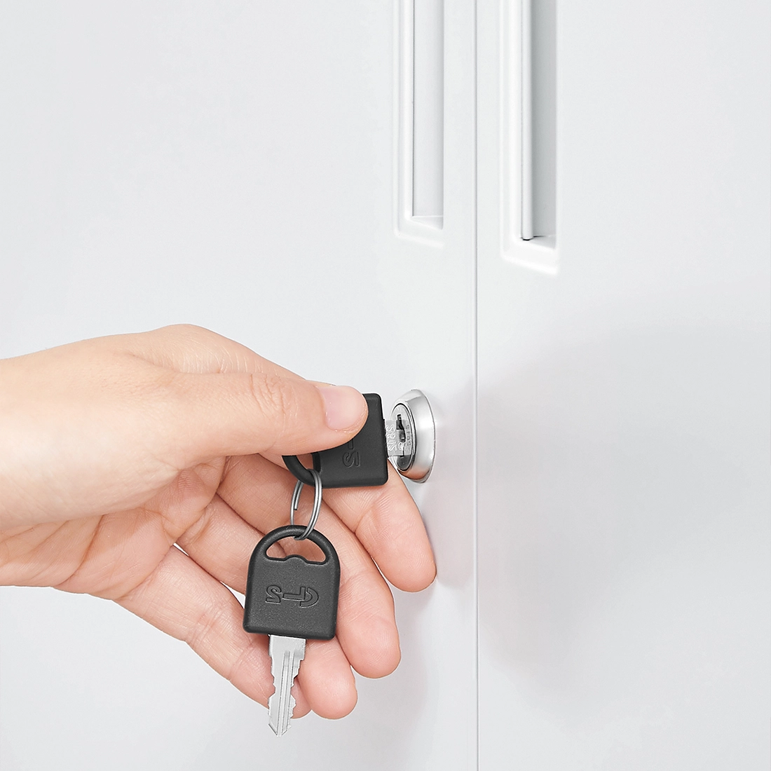 Szafka została wyposażona w metalowy zamek odporny na codzienne użytkowanie. W zestawie znajdują się dwa klucze, co ułatwia korzystanie z szafki przez więcej niż jedną osobę. Metalowy zamek pozwala przechowywać dokumenty i rzeczy osobiste w uporządkowany i kontrolowany sposób.